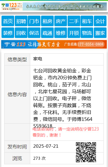 七台河回收黄金铂金,彩金钯金,市内20分钟免费上门回收。桃山,茄子河,北山,北岸七星花园,马场都可以上门回收。电子秤,微信转账。按票子克数算,不烧金,不化料。无手续费折旧费,微信同号。于师傅15645593618 【电话咨询时,请一定说明在七台河信息网看到的,谢谢!】 |