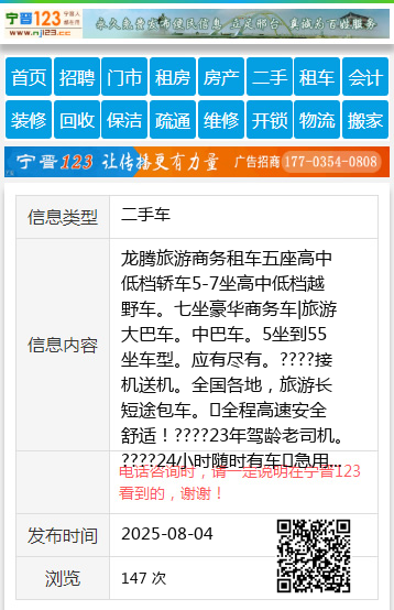 龙腾旅游商务租车五座高中低档轿车5-7坐高中低档越野车。七坐豪华商务车|旅游大巴车。中巴车。5坐到55坐车型。应有尽有。????接机送机。全国各地,旅游长短途包车。❤全程高速安全舒适!????23年驾龄老司机。????24小时随时有车❤急用车您找我。旅游包车|个人租车|企业租车|商务租车|剧组租车|幼儿园专业校车!应有尽有。用车您找我!电话微信13069852223康先生13069852223 【电话咨询时,请一定说明在七台河信息网看到的,谢谢!】 |
