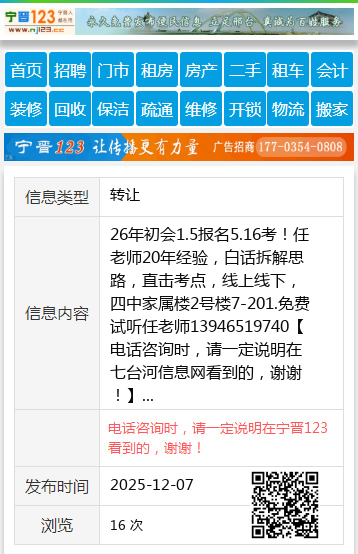 26年初会1.5报名5.16考!任老师20年经验,白话拆解思路,直击考点,线上线下,四中家属楼2号楼7-201.免费试听任老师13946519740 【电话咨询时,请一定说明在七台河信息网看到的,谢谢!】 |