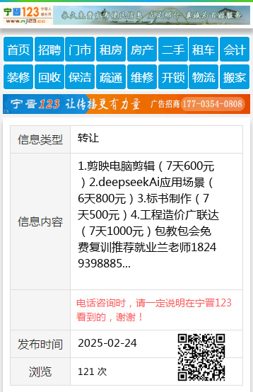 1.剪映电脑剪辑(7天600元)2.deepseekAi应用场景(6天800元)3.标书制作(7天500元)4.工程造价广联达(7天1000元)包教包会免费复训推荐就业兰老师18249398885 【电话咨询时,请一定说明在七台河信息网看到的,谢谢!】 |