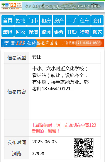 十小、六小附近文化学校(看护站)转让,设施齐全,有生源,接手就能营业。郭老师18746410121