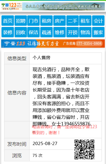 现吉兑酒行,品种齐全,散装酒,瓶装酒,坛装酒应有尽有,接手稳赚,一次投资长期受益,因为是十年老店,回头客满满,省去新店开张没有客源的担心,而且不用添加额外费用就可以营业赚钱,省心省力省时,开店即赚钱。女士13946559876 【电话咨询时,请一定说明在七台河信息网看到的,谢谢!】 |
