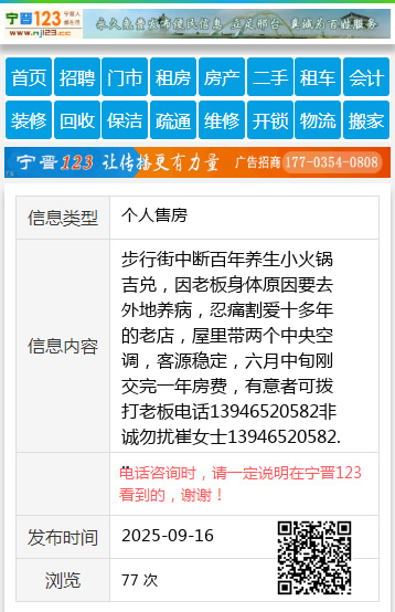 步行街中断百年养生小火锅吉兑,因老板身体原因要去外地养病,忍痛割爱十多年的老店,屋里带两个中央空调,客源稳定,六月中旬刚交完一年房费,有意者可拨打老板电话13946520582非诚勿扰崔女士13946520582 【电话咨询时,请一定说明在七台河信息网看到的,谢谢!】 |