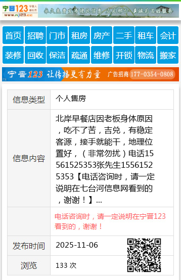 北岸早餐店因老板身体原因,吃不了苦,吉兑,有稳定客源,接手就能干,地理位置好,(非常勿扰)电话15561525353张先生15561525353 【电话咨询时,请一定说明在七台河信息网看到的,谢谢!】 |