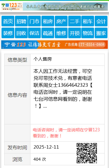 【电话咨询时,请一定说明在七台河信息网看到的,谢谢!】