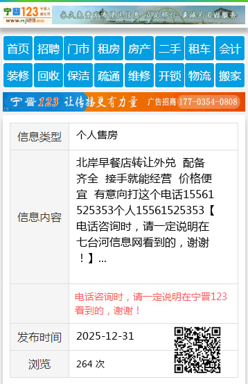 北岸早餐店转让外兑 配备齐全 接手就能经营 价格便宜 有意向打这个电话15561525353个人15561525353 【电话咨询时,请一定说明在七台河信息网看到的,谢谢!】 |