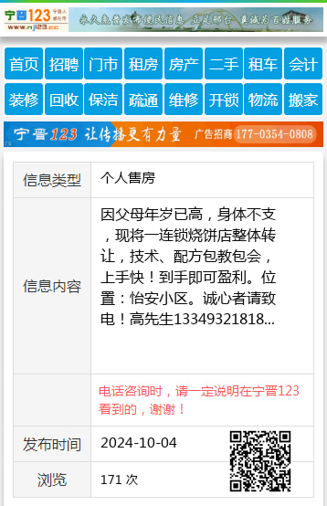 因父母年岁已高,身体不支,现将一连锁烧饼店整体转让,技术、配方包教包会,上手快!到手即可盈利。位置:怡安小区。诚心者请致电!高先生13349321818 【电话咨询时,请一定说明在七台河信息网看到的,谢谢!】 |