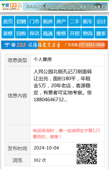 人民公园北侧孔记刀削面转让出兑,面积180平,年租金5万,20年老店,客源稳定,有意者可实地考察。张18804646732 【电话咨询时,请一定说明在七台河信息网看到的,谢谢!】 |