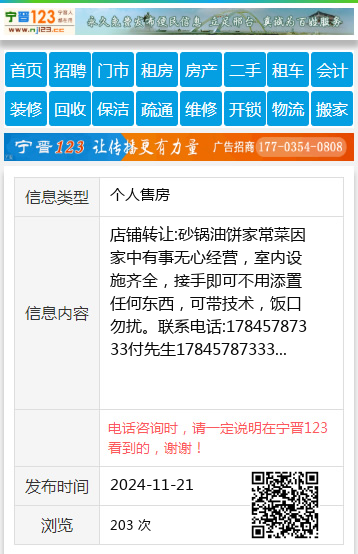 店铺转让:砂锅油饼家常菜因家中有事无心经营,室内设施齐全,接手即可不用添置任何东西,可带技术,饭口勿扰。联系电话:17845787333付先生17845787333 【电话咨询时,请一定说明在七台河信息网看到的,谢谢!】 |