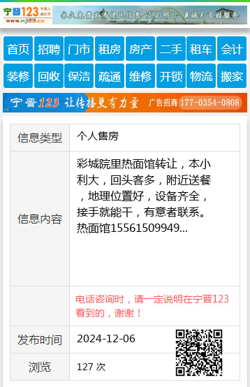 彩城院里热面馆转让,本小利大,回头客多,附近送餐,地理位置好,设备齐全,接手就能干,有意者联系。热面馆15561509949