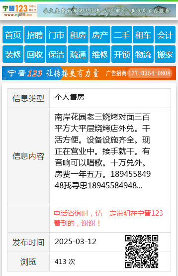 南岸花园老三烧烤对面三百平方大平层烧烤店外兑。干活方便。设备设施齐全。现正在营业中。接手就干。有音响可以唱歌。十万兑外。房费一年五万。18945584948我寻思18945584948 【电话咨询时,请一定说明在七台河信息网看到的,谢谢!】 |