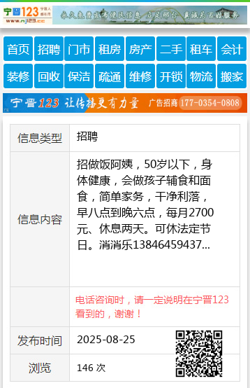 招做饭阿姨,50岁以下,身体健康,会做孩子辅食和面食,简单家务,干净利落,早八点到晚六点,每月2700元、休息两天。可休法定节日。消消乐13846459437 【电话咨询时,请一定说明在七台河信息网看到的,谢谢!】 |