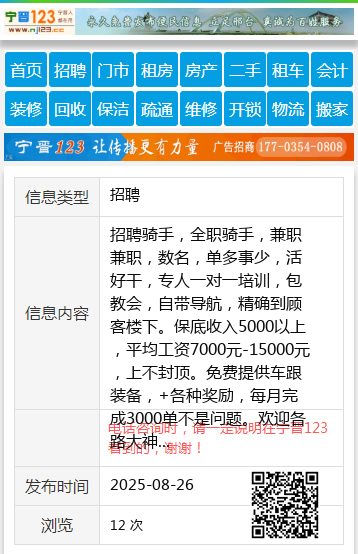 招聘骑手,全职骑手,兼职兼职,数名,单多事少,活好干,专人一对一培训,包教会,自带导航,精确到顾客楼下。保底收入5000以上,平均工资7000元-15000元,上不封顶。免费提供车跟装备,+各种奖励,每月完成3000单不是问题。欢迎各路大神骚扰电话18746402070(微信同步)单单18746402070 【电话咨询时,请一定说明在七台河信息网看到的,谢谢!】 |