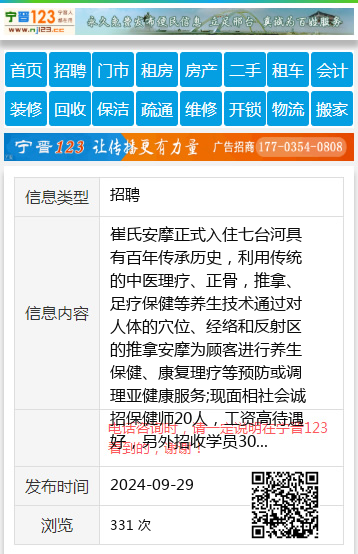 崔氏安摩正式入住七台河具有百年传承历史,利用传统的中医理疗、正骨,推拿、足疗保健等养生技术通过对人体的穴位、经络和反射区的推拿安摩为顾客进行养生保健、康复理疗等预防或调理亚健康服务;现面相社会诚招保健师20人,工资高待遇好,另外招收学员30人,要求女生28岁以上,五官端正。崔氏百年传承,恢复属于你的健康!诚邀热线19104645511张19104645511 【电话咨询时,请一定说明在七台河信息网看到的,谢谢!】 |