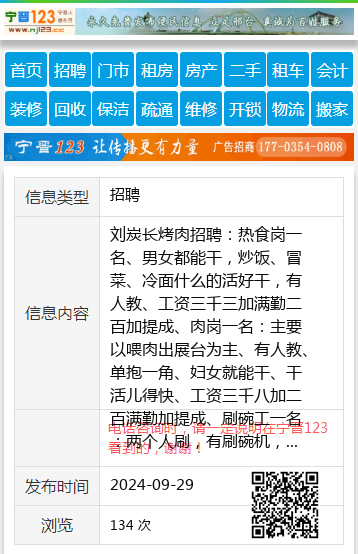刘炭长烤肉招聘:热食岗一名、男女都能干,炒饭、冒菜、冷面什么的活好干,有人教、工资三千三加满勤二百加提成、肉岗一名:主要以喂肉出展台为主、有人教、单抱一角、妇女就能干、干活儿得快、工资三千八加二百满勤加提成、刷碗工一名:两个人刷,有刷碗机,工资二千八、加二百满勤加提成、以上人员一个月两个半天休息,要求五十岁以下,身体健康,老板人好事少,不怎么在店,活儿好干、有想干的联系:王18704645979微信同号,具体进店咨询、饭口勿扰[抱拳][抱拳]王学文18704645979 |