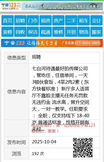 工作地点:茄子河区东方建材城招男主播18646432000 【电话咨询时,请一定说明在七台河信息网看到的,谢谢!】 |