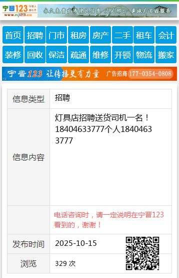 灯具店招聘送货司机一名!18404633777个人18404633777