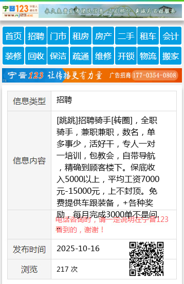 [跳跳]招聘骑手[转圈],全职骑手,兼职兼职,数名,单多事少,活好干,专人一对一培训,包教会,自带导航,精确到顾客楼下。保底收入5000以上,平均工资7000元-15000元,上不封顶。免费提供车跟装备,+各种奖励,每月完成3000单不是问题。欢迎各路大神骚扰[勾引][勾引][勾引][勾引]电话18746402070(微信同步)个人18746402070 【电话咨询时,请一定说明在七台河信息网看到的,谢谢!】 |