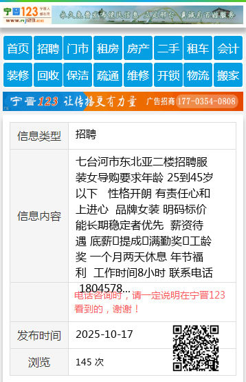电话咨询时,请一定说明在七台河信息网看到的,谢谢!