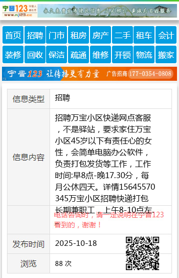 招聘万宝小区快递网点客服,不是驿站,要求家住万宝小区45岁以下有责任心的女性,会简单电脑办公软件,负责打包发货等工作,工作时间:早8点-晚17.30分,每月公休四天。详情15645570345万宝小区招聘快递打包长期兼职工,上午8-10点左右,下午12-14点左右,非诚勿扰,没有休周六周日法定节假日的事。想多挣增加时间就可以。详情15645570345。刘经理15645570345 【电话咨询时,请一定说明在七台河信息网看到的,谢谢!】 |
