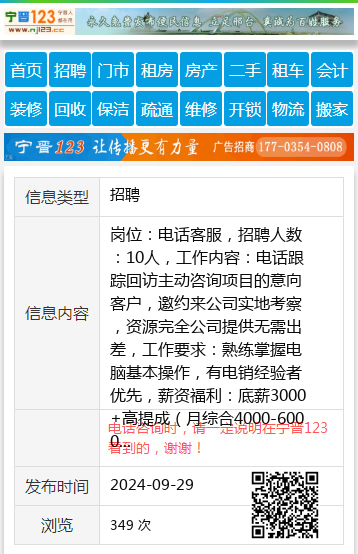岗位:电话客服,