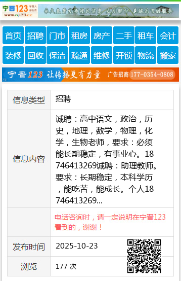 诚聘:高中语文,政治,历史,地理,数学,物理,化学,生物老师,要求:必须能长期稳定,有事业心。18746413269诚聘:助理教师。要求:长期稳定,本科学历,能吃苦,能成长。个人18746413269 【电话咨询时,请一定说明在七台河信息网看到的,谢谢!】 |