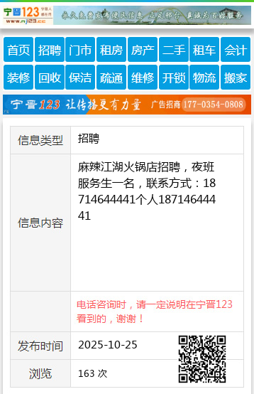 麻辣江湖火锅店招聘,夜班服务生一名,联系方式:18714644441个人18714644441