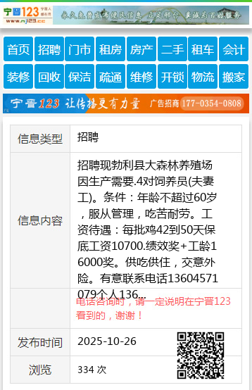 招聘现勃利县大森林养殖场因生产需要.4对饲养员(夫妻工)。条件:年龄不超过60岁,服从管理,吃苦耐劳。工资待遇:每批鸡42到50天保底工资10700.绩效奖+工龄16000奖。供吃供住,交意外险。有意联系电话13604571079个人13604571079 【电话咨询时,请一定说明在七台河信息网看到的,谢谢!】 |