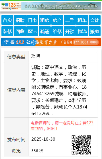 诚聘:高中语文,政治,历史,地理,数学,物理,化学,生物老师,要求:必须能长期稳定,有事业心。18746413269诚聘:助理教师。要求:长期稳定,本科学历,能吃苦,能成长个人18746413269 【电话咨询时,请一定说明在七台河信息网看到的,谢谢!】 |