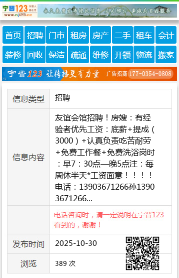 友谊会馆招聘!房嫂:有经验者优先工资:底薪+提成(3000)+认真负责吃苦耐劳+免费工作餐+免费洗浴岗时:早7:30点—晚5点注:每周休半天*工资面意!!!!电话:13903671266孙13903671266 【电话咨询时,请一定说明在七台河信息网看到的,谢谢!】 |