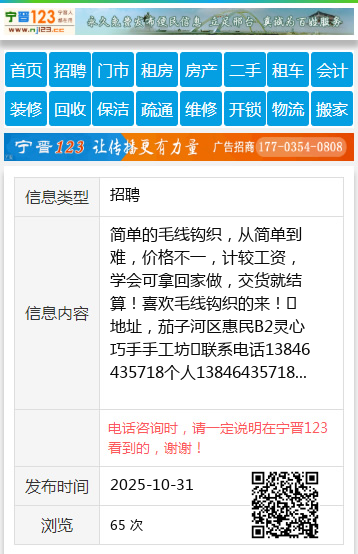 简单的毛线钩织,从简单到难,价格不一,计较工资,学会可拿回家做,交货就结算!喜欢毛线钩织的来! 地址,茄子河区惠民B2灵心巧手手工坊联系电话13846435718个人13846435718 【电话咨询时,请一定说明在七台河信息网看到的,谢谢!】 |