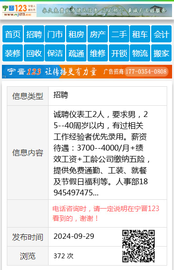 诚聘仪表工2人,要求男,25--40周岁以内,有过相关工作经验者优先录用。薪资待遇:3700--4000/月+绩效工资+工龄公司缴纳五险,提供免费通勤、工装、就餐及节假日福利等。人事部18945497475 【电话咨询时,请一定说明在七台河信息网看到的,谢谢!】 |