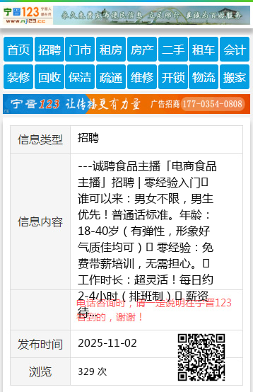 ---诚聘食品主播「电商食品主播」招聘 | 零经验入门✔ 谁可以来:男女不限,男生优先!普通话标准。年龄:18-40岁(有弹性,形象好气质佳均可)✔ 零经验:免费带薪培训,无需担心。✔ 工作时长:超灵活!每日约2-4小时(排班制)✔ 薪资待遇:2000-4000元工作内容:到工作室直播/与团队配合拍摄美食短视频。欢迎咨询!:15214651588(vx 同号)---个人15214651588 【电话咨询时,请一定说明在七台河信息网看到的,谢谢!】 |