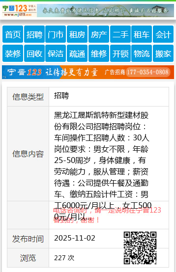黑龙江晟斯凯特新型建材股份有限公司招聘招聘岗位:车间操作工招聘人数:30人岗位要求:男女不限,年龄25-50周岁,身体健康,有劳动能力,服从管理;薪资待遇:公司提供午餐及通勤车、缴纳五险计件工资:男工6000元/月以上,女工5000元/月以上上班时间:6:00-18:00联系方式:13846479963 王女士工作地址:七台河市茄子河区大唐电厂道口里侧4000米个人13846479963 【电话咨询时,请一定说明在七台河信息网看到的,谢谢!】 |