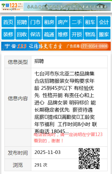 七台河市东北亚二楼品牌集合店招聘服装女导购要求年龄 25到45岁以下 有经验优先 性格开朗 有责任心和上进心 品牌女装 明码标价 能长期稳定者优先 薪资待遇 底薪➕提成➕满勤奖➕工龄奖 年节福利 工作时间8小时 联系电话 18045780578个人18045780578 【电话咨询时,请一定说明在七台河信息网看到的,谢谢!】 |