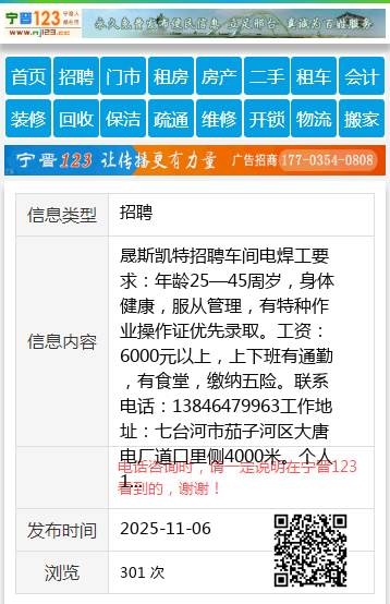 晟斯凯特招聘车间电焊工要求:年龄25—45周岁,身体健康,服从管理,有特种作业操作证优先录取。工资:6000元以上,上下班有通勤,有食堂,缴纳五险。联系电话:13846479963工作地址:七台河市茄子河区大唐电厂道口里侧4000米。个人13846479963 【电话咨询时,请一定说明在七台河信息网看到的,谢谢!】 |