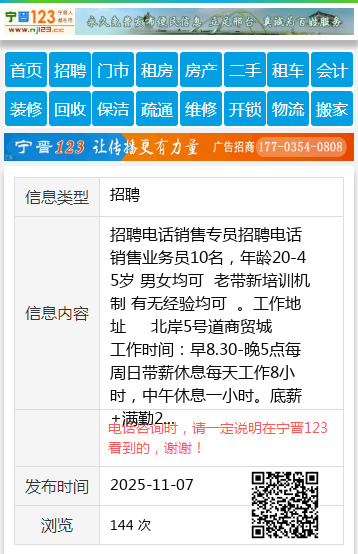 招聘电话销售专员招聘电话销售业务员10名,年龄20-45岁 男女均可 老带新培训机制 有无经验均可 。工作地址 北岸5号道商贸城 工作时间:早8.30-晚5点每周日带薪休息每天工作8小时,中午休息一小时。底薪+满勤2800 普通员工综合工资7000 精英员工8-12000 ,不要想着拿底薪 公司没有拿底薪的员工 公司员工70➕ 目前精英单王 工资15000 薪资真实无水分 只要你努力,必须有回报。地址:七台河桃山区多伦多联系人:崔先生联系方式:18904645551个人18904645551 【电话咨询时,请一定说明在七台河信息网看到的,谢谢!】 |