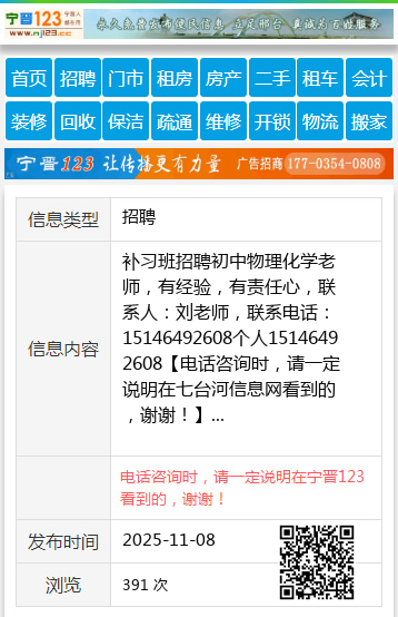 补习班招聘初中物理化学老师,有经验,有责任心,联系人:刘老师,联系电话:15146492608个人15146492608 【电话咨询时,请一定说明在七台河信息网看到的,谢谢!】 |