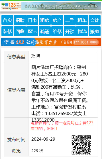 图片洗煤厂招聘岗位:采制样女工5名工资2600元--2800元做饭一名工资2000元+满勤200有通勤车,洗浴,食堂,每月20号开资,保你常年不放假放假有保底工资。工作地点:富强新发村联系电话:13351269087黄女士13351269087 【电话咨询时,请一定说明在七台河信息网看到的,谢谢!】 |