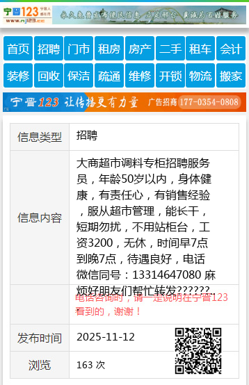 大商超市调料专柜招聘服务员,年龄50岁以内,身体健康,有责任心,有销售经验,服从超市管理,能长干,短期勿扰,不用站柜台,工资3200,无休,时间早7点到晚7点,待遇良好,电话微信同号:13314647080 麻烦好朋友们帮忙转发????????个人13314647080 【电话咨询时,请一定说明在七台河信息网看到的,谢谢!】 |
