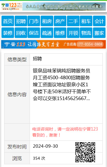 银泉品味笨锅炖招聘服务员月工资4500-4800招聘服务嫂工资面议地址银泉小区1号楼下走50米活好干简单不会可以交张15145625667 【电话咨询时,请一定说明在七台河信息网看到的,谢谢!】 |