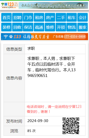 求兼职,本人男,求兼职下午五点以后临时活干,会开车,临时代驾也行。本人13946590651