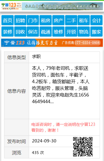 本人,79年老司机,求职送货司机,面包车,半截子,4.2板车,箱货都能开,本人吃苦耐劳,服从管理,头脑灵活,欢迎来电赵先生16564649444 【电话咨询时,请一定说明在七台河信息网看到的,谢谢!】 |