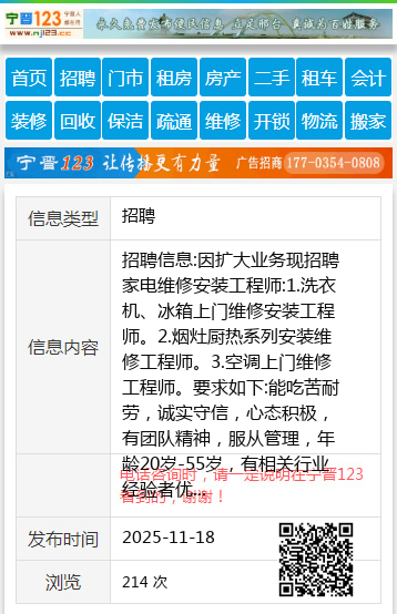 招聘信息:因扩大业务现招聘家电维修安装工程师:1.洗衣机、冰箱上门维修安装工程师。2.烟灶厨热系列安装维修工程师。3.空调上门维修工程师。要求如下:能吃苦耐劳,诚实守信,心态积极,有团队精神,服从管理,年龄20岁-55岁,有相关行业经验者优先上岗,并且年龄可以适当放宽。工作性质:上门服务,需自备车辆及工具。薪资待遇在行业内同等规模比例高,单量稳定,计件工资,多劳多得。有意者速来,择优录取,招满为止。联系人:14745671010个人14745671010 【电话咨询时,请一定说明在七台河信息网看到的,谢谢!】 |