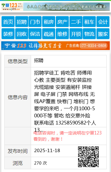 招聘学徒工 肯吃苦 师傅用心教 主要类型 有安装监控 光缆熔接 安装道闸杆 拼接屏 电子屏 门禁 网络布线 无线AP覆盖 快卷门 堆积门 想要学的来吧,一个月1000-5000不等 管吃 给交意外险 联系电话 13258590582个人13258590582 【电话咨询时,请一定说明在七台河信息网看到的,谢谢!】 |
