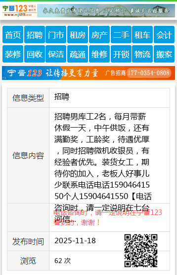 招聘男库工2名,每月带薪休假一天,中午供饭,还有满勤奖,工龄奖,待遇优厚,同时招聘微机收银员,有经验者优先。装货女工,期待你的加入,老板人好事儿少联系电话电话15904641550个人15904641550 【电话咨询时,请一定说明在七台河信息网看到的,谢谢!】 |