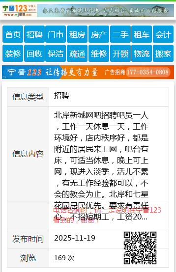 北岸新城网吧招聘吧员一人,工作一天休息一天,工作环境好,店内秩序好,都是附近的居民来上网,吧台有床,可适当休息,晚上可上网,现进入淡季,活儿不累,有无工作经验都可以,不会的教会为止。北岸和七星花园居民优先。要求有责任心,不招短期工,工资2000元。电话:13846464027个人13846464027 【电话咨询时,请一定说明在七台河信息网看到的,谢谢!】 |