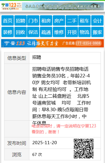 招聘电话销售专员招聘电话销售业务员10名,年龄22-40岁 男女均可 老带新培训机制 有无经验均可 。工作地址 山上二转盘附近 北岸5号道商贸城 均可 工作时间:早8.30-晚5点每周日带薪休息每天工作8小时,中午休息一小时。底薪2600+满勤200➕提成 综合工资8000➕ , 努力就有回报 给一个证明自己的机会 。地址:七台河桃山区多伦多对面联系人:崔先生电话:18904645551联系方式个人18904645551 【电话咨询时,请一定说明在七台河信息网看到的,谢谢!】 |