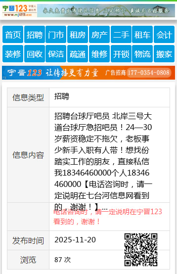 招聘台球厅吧员 北岸三号大道台球厅急招吧员!24—30岁薪资稳定不拖欠,老板事少新手入职有人带!想找份踏实工作的朋友,直接私信我18346460000个人18346460000 【电话咨询时,请一定说明在七台河信息网看到的,谢谢!】 |