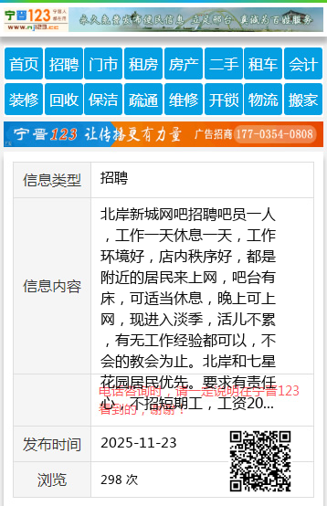 北岸新城网吧招聘吧员一人,工作一天休息一天,工作环境好,店内秩序好,都是附近的居民来上网,吧台有床,可适当休息,晚上可上网,现进入淡季,活儿不累,有无工作经验都可以,不会的教会为止。北岸和七星花园居民优先。要求有责任心,不招短期工,工资2000元。电话:13846464027个人13846464027 【电话咨询时,请一定说明在七台河信息网看到的,谢谢!】 |